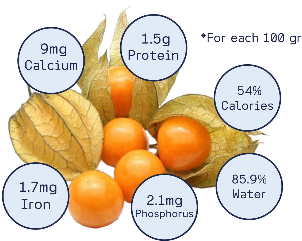 Goldenberry is a native fruit from South America. It has a sweet and slightly bitter flavor. Encased in a thin, yellowish skin.