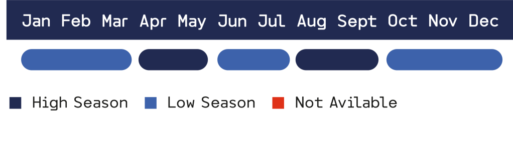 The peak season of Red Dragon Fruit is on the months of April to May and August to September. The low season is on the months of January, to March, June to July and October to December.