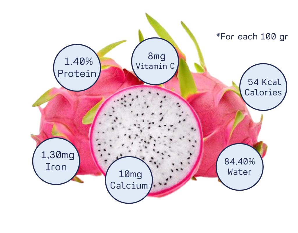 The dragon fruit, is an exotic fruit with juicy and sweet pulp, It’s rich in antioxidants and vitamins, characterized by its refreshing.
